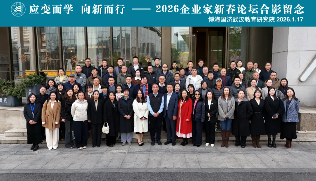 2026年1月17日,由博海国济武汉教育研究院主办的“应变成学 向新而行”——2026企业家新春论坛暨班级结业仪式与联欢晚宴等系列活动成功举办。在一天密集的学习中,完成了一场从营销创新到文化战略、再到财税合规的系统性认知升级。本次新春学习论坛三大主题环环相扣,为企业在充满不确定性的2026年提供了清晰的行动坐标。