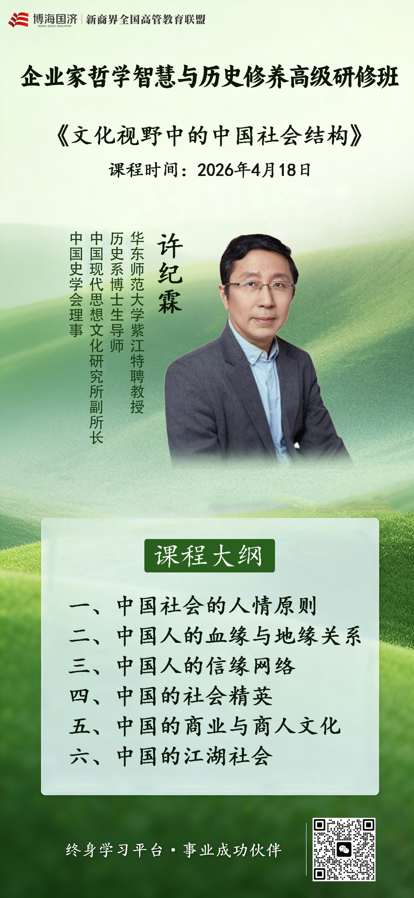 - 企业家国学班《文化视野的中国社会结构》时间:4月18-19日